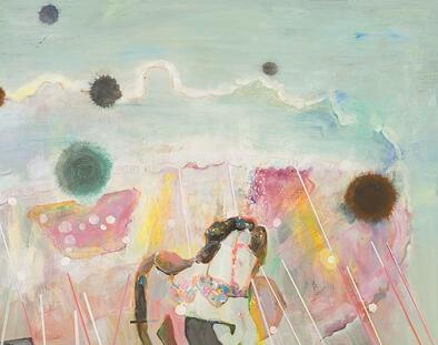 陸霄虹,現(xiàn)為南京藝術(shù)學(xué)院人文學(xué)院副教授、藝術(shù)管理系主任。出生于江蘇無錫的她長(zhǎng)期浸染在江南深厚的文化積累中,在連接傳統(tǒng)與現(xiàn)代的道路上逐漸有了自己的藝術(shù)風(fēng)格。她的作品天然有一種江南氣候的水潤(rùn)與透明感,輕薄的色彩、大膽的線條、點(diǎn)線面的結(jié)合形成了一種奇幻的戲劇張力與浪漫情調(diào)。在似與不似之間、在寫實(shí)和抽象之間,那條界限始終不那么明晰,具有分寸感。