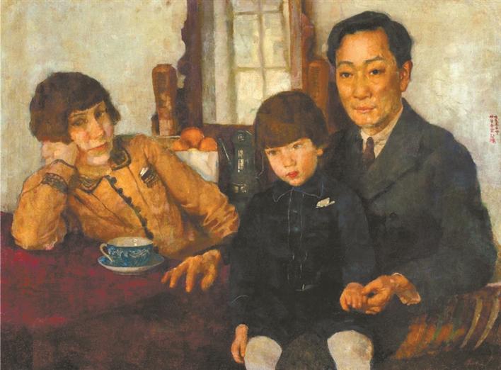 《楊仲子全家福》也是吸睛之作,它以沉靜之態(tài)吸引觀(guān)眾駐足,忍不住與畫(huà)中人對(duì)視。這是徐悲鴻的佳作,畫(huà)的是好友楊仲子一家。楊仲子是中國(guó)最早留學(xué)歐洲研習(xí)西方音樂(lè)的先驅(qū),回國(guó)后傳授西方音樂(lè),創(chuàng)建并推進(jìn)中國(guó)音樂(lè)教育教學(xué)體制,倡導(dǎo)改進(jìn)并推動(dòng)民族音樂(lè)發(fā)展。這件創(chuàng)作于1928年冬天的作品,徐悲鴻畫(huà)出了楊仲子和妻子、孩子閑適的狀態(tài)。畫(huà)中三人神態(tài)各異,在藝術(shù)家的傳情畫(huà)筆下,觀(guān)眾似能看到他們恬淡表情之后的情緒。