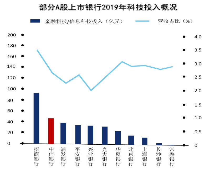 出國(guó)金融、青少年、女性、老年不同的細(xì)分客群,會(huì)有不同的“金融+非金融”服務(wù)方式……中信銀行一直有感知不同人群溫度的傳統(tǒng),但是要上規(guī)模積累出核心優(yōu)勢(shì),離不開科技。今年,中信銀行確定了“以數(shù)字化轉(zhuǎn)型為主線,推動(dòng)零售經(jīng)營(yíng)管理體系迭代升級(jí)”的發(fā)展策略。2020年中信銀行科技投入69.26億元,位居股份制銀行第二,依舊在排名上咬著招商。