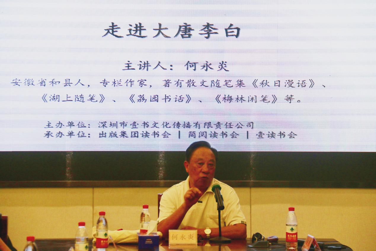 深圳新聞網(wǎng)訊 2019年8月31日下午,“福田區(qū)第三屆文學(xué)精品有聲閱讀藝術(shù)節(jié)”之“唐詩三百首”專場(chǎng)活動(dòng)“走進(jìn)大唐李白”公益文化講座暨最美唐詩朗誦會(huì)在簡(jiǎn)閱書吧香蜜湖店三樓多功能室成功舉辦?;顒?dòng)由深圳市壹書文化傳播有限責(zé)任公司、深圳市書城文化投資控股有限公司主辦,出版集團(tuán)讀書會(huì)、簡(jiǎn)閱讀書會(huì)和壹讀書會(huì)承辦,本次活動(dòng)吸引了眾多對(duì)中國(guó)傳統(tǒng)文化富有興趣的詩歌愛好者,活動(dòng)開始前已座無虛席,靜候這場(chǎng)關(guān)于李白、關(guān)于詩歌的文化盛宴。