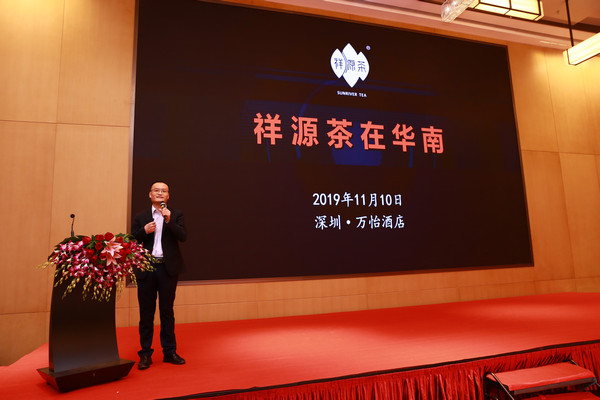 祥源茶業(yè)營(yíng)銷(xiāo)中心助理總經(jīng)理華南、河南大區(qū)市場(chǎng)總監(jiān)趙東方先生介紹祥源茶未來(lái)在粵港澳大灣區(qū)及華南、西南市場(chǎng)面對(duì)的機(jī)遇和未來(lái)營(yíng)銷(xiāo)布局