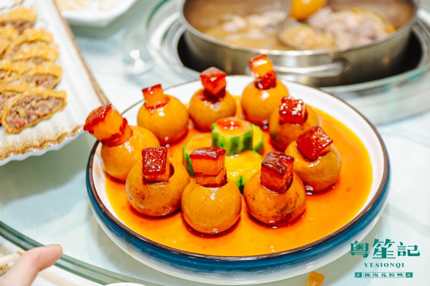 粵笙記陳皮菜式種類(lèi)豐富且菜式新穎,除了“新會(huì)陳皮花膠鴨”之外,入口即化卻不膩口“新會(huì)柑橘紅燒肉”、外脆里嫩的“紅燒陳皮乳鴿”、酥香味美的“匠心陳皮骨”、開(kāi)胃甜蜜的“陳皮番茄”,還有小時(shí)候的回憶“陳皮缽仔糕”,這些特色陳皮菜肴都不容錯(cuò)過(guò)。
