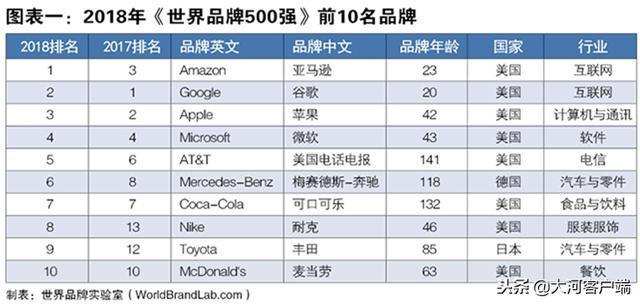由世界品牌實(shí)驗(yàn)室(World Brand Lab)獨(dú)家編制的2018年度(第十五屆)《世界品牌500強(qiáng)》排行榜于12月18日在美國紐約揭曉。得益于人工智能和大數(shù)據(jù)技術(shù),去年的季軍亞馬遜(Amazon)一舉擊敗蘋果(Apple)榮登榜首,其第三季度營業(yè)利潤創(chuàng)10年新高;谷歌(Google)承襲科技優(yōu)勢,在無人駕駛領(lǐng)域成績突出,位列第二;蘋果(Apple)退居第三。美國占據(jù)500強(qiáng)中的223席,穩(wěn)居品牌大國第一。中國入選的品牌只有38個(gè),與經(jīng)濟(jì)第二大國的地位并不匹配。其中表現(xiàn)亮眼的品牌有國家電網(wǎng)、騰訊、海爾、華為、青島啤酒、中化、五糧液、中國國航。