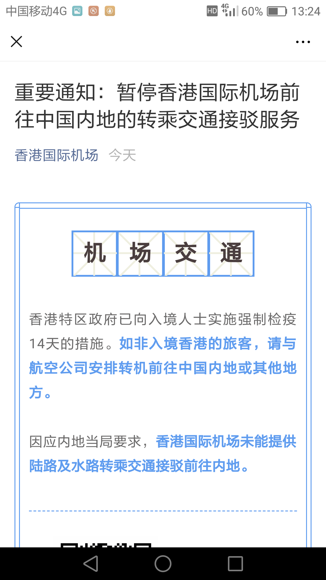 22日早間,來自香港國際機(jī)場(chǎng)的消息稱,香港特區(qū)政府已向入境人士實(shí)施強(qiáng)制檢疫14天措施,香港國際機(jī)場(chǎng)將不能提供陸路及水路轉(zhuǎn)乘交通接駁前往內(nèi)地。