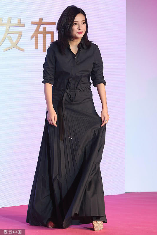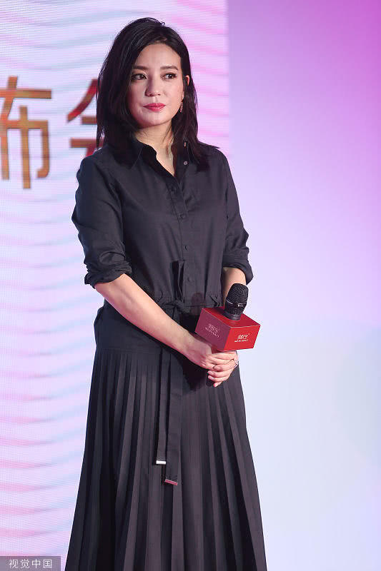 趙薇一身黑色長(zhǎng)裙現(xiàn)身發(fā)布會(huì)現(xiàn)場(chǎng),化著淡妝的她看起來氣色不錯(cuò)。趙薇的臉頰圓潤,看起來比影視劇中胖了不少。