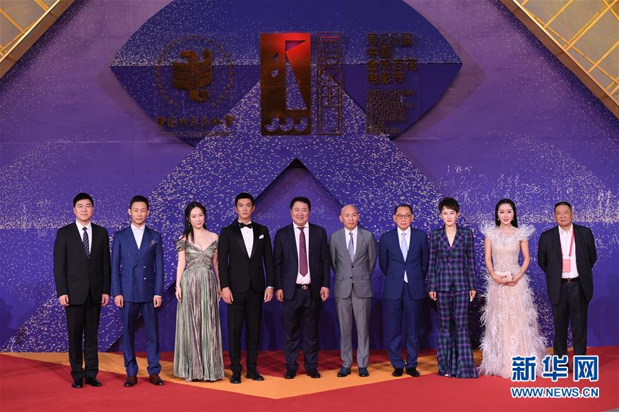 11月23日,吳剛(右)在紅毯儀式上。當(dāng)日,第28屆中國金雞百花電影節(jié)紅毯儀式在福建廈門舉行。新華社記者姜克紅攝