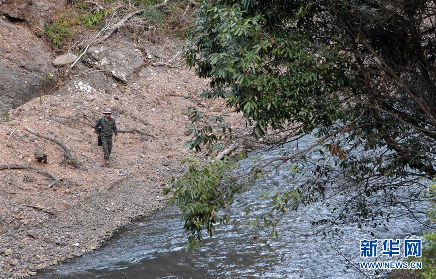 在江西九連山國(guó)家級(jí)自然保護(hù)區(qū),陳志高帶著他的相機(jī)準(zhǔn)備過一條小河進(jìn)入密林深處拍攝鳥類(1月8日攝)。新華社記者 彭昭之 攝