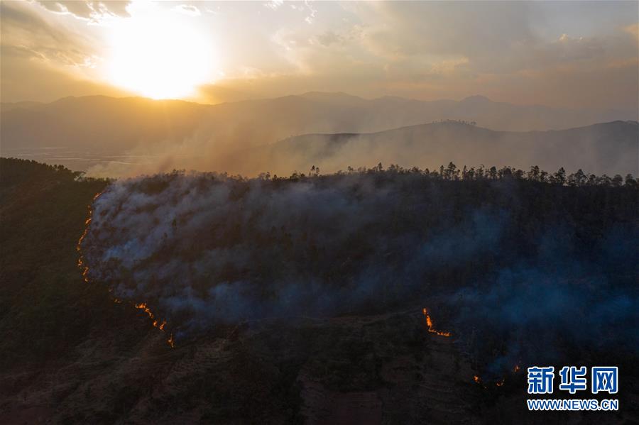 這是3月31日在西昌市經(jīng)久鄉(xiāng)拍攝的森林火災現(xiàn)場(無人機照片)。新華社記者江宏景攝