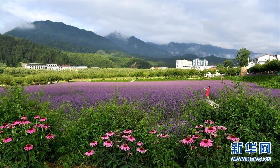 7月1日,市民在位于留壩縣城的金水灣花海游玩。近日,陜西省漢中市留壩縣金水灣花海的各類鮮花次第綻放,絢麗繽紛。新華社記者劉瀟攝