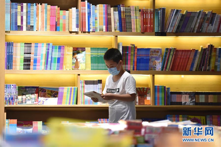7月5日,一名小朋友在河北省定州市新華書店挑選圖書。近日,河北省定州市新華書店在做好疫情防控的前提下,開展“樂享圖書嘉年華”系列活動,通過舉辦圖書聯(lián)展、親子閱讀、少兒讀物推介等活動,吸引少年兒童走進(jìn)圖書館,感受書香陪伴的夏天。新華社記者朱旭東攝