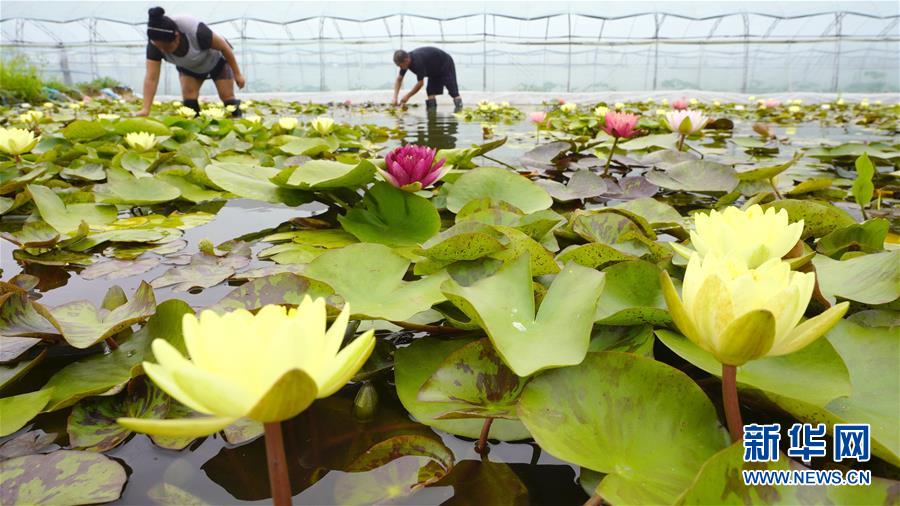 8月12日,河北省灤州市茨榆坨鎮(zhèn)草塘坨村花農在大棚內打理種植的蓮花。近年來,河北省灤州市茨榆坨鎮(zhèn)結合市場需求,引導農民發(fā)展玫瑰、蓮花等花卉規(guī)?;N植,通過“線上”和“線下”相結合的銷售模式,進入北京、天津等地花卉市場,在扮靚城鄉(xiāng)的同時為種植戶帶來良好收益。新華社記者 牟宇 攝