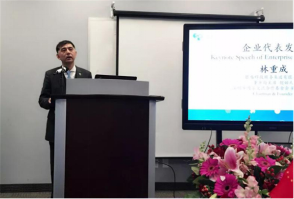 ▲深圳中小企聯(lián)會(huì)長(zhǎng)、基金會(huì)榮譽(yù)副會(huì)長(zhǎng)、銀盛集團(tuán)董事局主席林重成演講