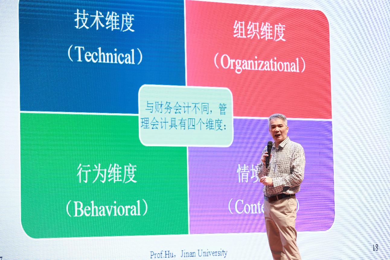 下午,暨南大學(xué)會(huì)計(jì)系教授胡玉明以“管理會(huì)計(jì)如何‘由技入道’”為題,首先分析了管理會(huì)計(jì)與財(cái)務(wù)會(huì)計(jì)有何不同,并深入淺出的剖析了大智移云背景下,管理會(huì)計(jì)的提升關(guān)鍵在于分析對(duì)數(shù)字背后意義。他強(qiáng)調(diào),會(huì)計(jì)人員對(duì)大數(shù)據(jù)等新科技挑戰(zhàn)不應(yīng)當(dāng)恐慌,反而應(yīng)當(dāng)成機(jī)遇,提升數(shù)據(jù)分析能力。