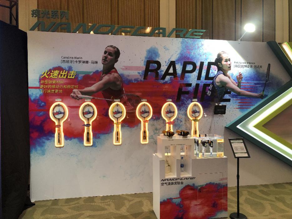 活動(dòng)現(xiàn)場,YONEX公開了2019年的開山之作NANOFLARE疾光系列,以及系列的首發(fā)產(chǎn)品NANOFLARE疾光700。新的產(chǎn)品以全新的科技打造而成,為追求速度更快,輕盈而彈力表現(xiàn)出色的全新球拍。球拍格外推出5U版本,也是市場上罕見的輕頭球拍中5U的規(guī)格。系列以疾光命名,意為疾如電光。為能在比賽上火速出擊,以快速的擊球占得先機(jī)而量身定做。