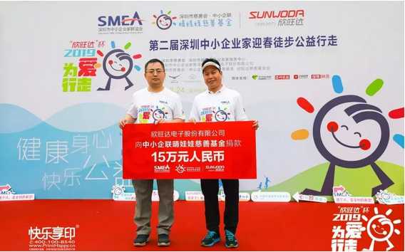 值得一提的是,本屆“為愛行走”活動的愛心冠名企業(yè)——中小企聯常務副會長、欣旺達電子股份有限公司董事長王威現場向中小企聯晴娃娃慈善基金捐款15萬元人民幣,并對本次活動提供了的全程贊助支持。