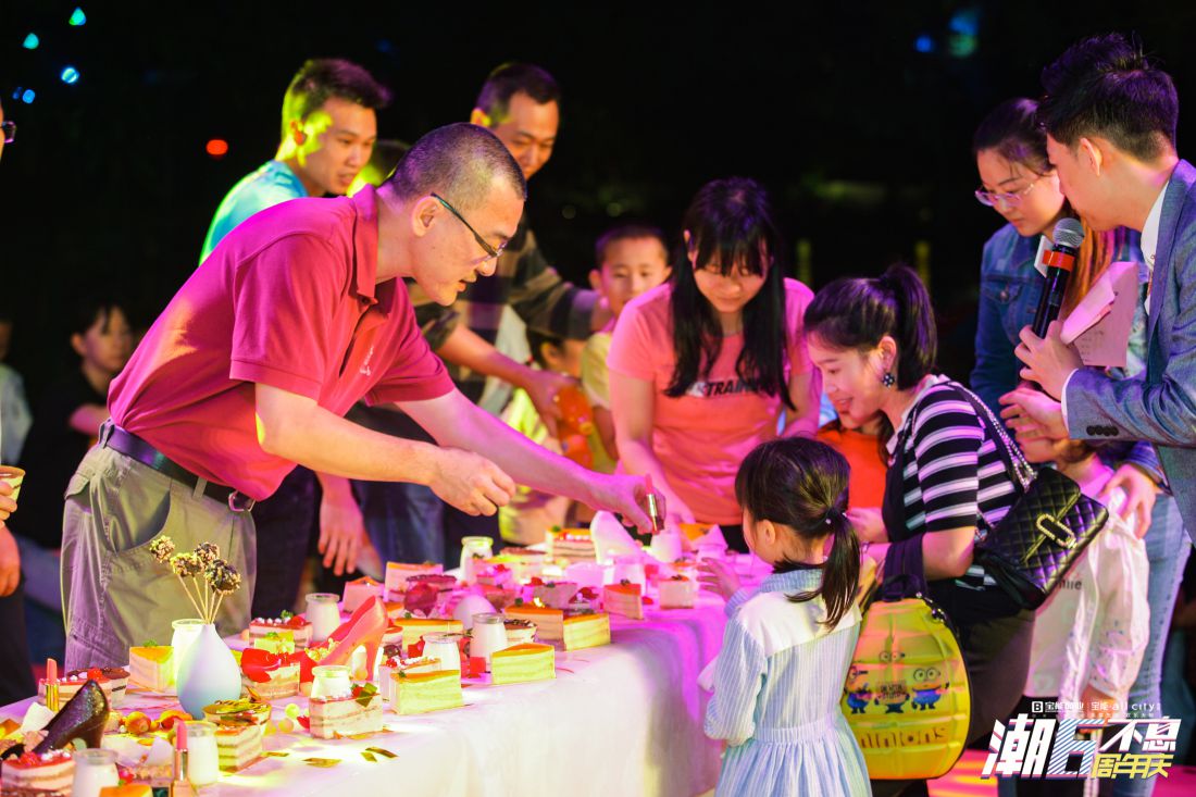 生日慶典現(xiàn)場,一首首耳熟能詳?shù)母枨g快的鼓舞、精彩的魔術(shù)等表演為市民們帶來了一場完美的視聽盛宴,抽獎環(huán)節(jié)更是將現(xiàn)場氣氛推向高潮。在“寶能·allcity6歲了,生日快樂”的祝福聲中,寶能控股高級副總裁張保文攜寶能商業(yè)副總經(jīng)理朱君及龍崗寶能·all city總經(jīng)理?xiàng)罹阮I(lǐng)導(dǎo)共同登臺切生日蛋糕,一同分享寶能·allcity生日的喜悅。
