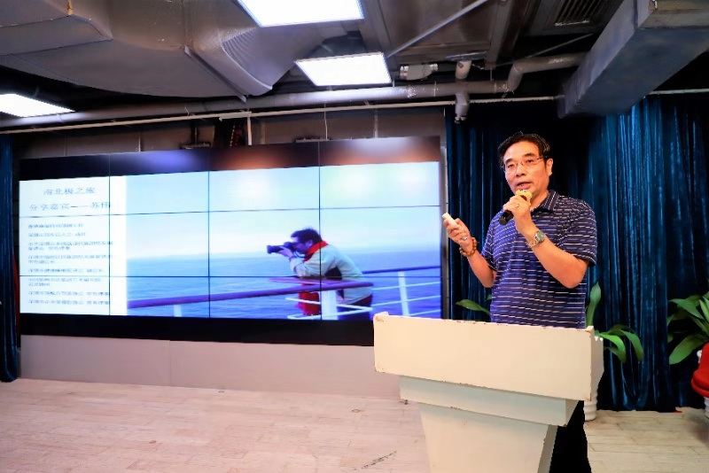 蘇偉老師在現(xiàn)場(chǎng)介紹:10月15日對(duì)深圳來說是一個(gè)極其不平凡的日子,上午在深圳舉辦了首屆“中國海洋第一展”暨“2019中國海洋經(jīng)濟(jì)博覽會(huì)”在深圳會(huì)展中心隆重開幕,下午由中國自主建造的首艘極地科學(xué)考察破冰船“雪龍2”號(hào)在蛇口港出發(fā)首航挺進(jìn)南極,特別機(jī)緣巧合的是我今晚分享的內(nèi)容就是南北極旅游。為什么用“畫”極地,而不是“話”極地,這是因?yàn)?,地球有三極,除了南北極外,還有“珠峰”就是第三極。而我們?nèi)齻€(gè)六十年的老男人,在蘇偉老師的鼓動(dòng)下,三個(gè)人用不到三年的時(shí)間,踏訪了這“三極”。如果要展開講,恐怕三天三夜也講不完。所以,“畫”極地,就是用照片,講一下照片背后的故事。