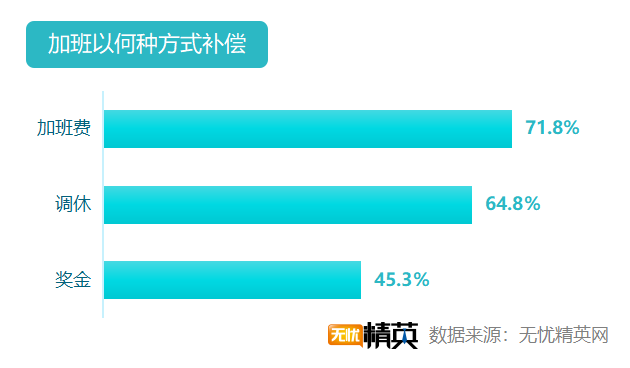 幾乎所有雙11加班的職場精英都能獲加班補(bǔ)償,更有31.4%人能獲得兩項(xiàng)或更多的補(bǔ)償。71.8%的職場精英可以獲得加班費(fèi);64.8%的人獲得調(diào)休;45.3%的人會(huì)獲得額外的獎(jiǎng)金。