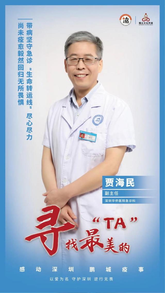 深圳華僑醫(yī)院是我市社會辦三級綜合醫(yī)院、市49個開設(shè)發(fā)熱門診的醫(yī)院之一,從受領(lǐng)任務(wù)起即積極行動,進(jìn)入臨戰(zhàn)狀態(tài)。作為開設(shè)發(fā)熱門診的醫(yī)院,需設(shè)置預(yù)檢分診并安排24小時值班,這里無疑是醫(yī)院最危險的“主戰(zhàn)場”。賈海民作為急診科副主任及院前科主任,自新冠疫情爆發(fā)以來,始終堅守在防疫工作第一線,負(fù)責(zé)組織發(fā)熱病人診治、疑似新冠肺炎120接診轉(zhuǎn)運、疑似患者專家會診等高危工作。
