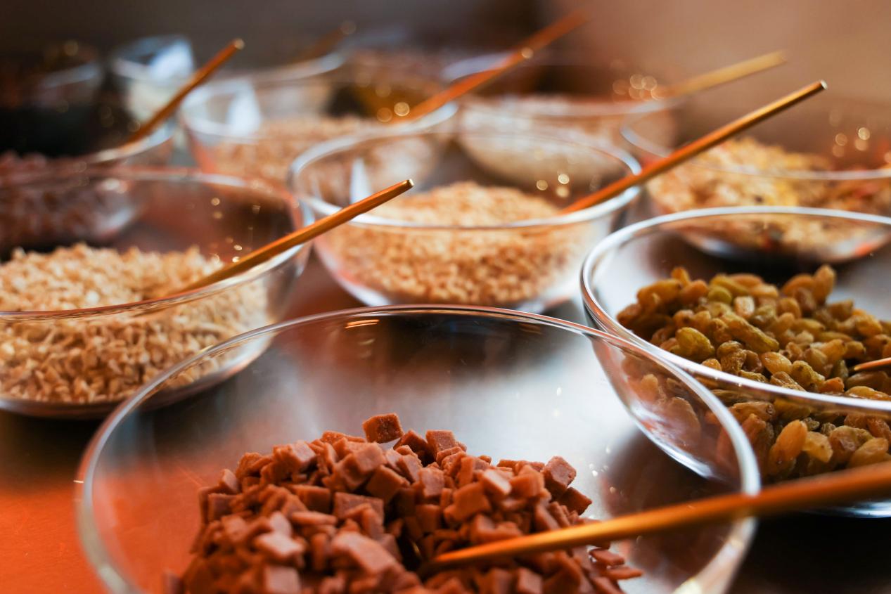 除了產品口味、形式上的革新,探魚的lab店還新增了“DIY”專區(qū)。茶水、水果、涼菜、冰粉都可以在DIY區(qū)根據自己的口味隨意搭配,增加了消費者在用餐過程中的可玩性。值得一提的是,探魚的DIY冰粉取消了目前市場中常見的或固定或多樣的搭配方式,為消費者提供了3種冰粉基底,18種各色配料,搭配方式和用量全部由消費者自己選擇。不同口味質地的配料為消費者提供了至少17000+種配比方式,這樣的設置潛在性地增加了用餐的社交功能,在整個就餐過程中,消費者被擁有了“體驗者”與“傳播者”的功能性身份,擁有了一場“就餐+游戲”的個性體驗。