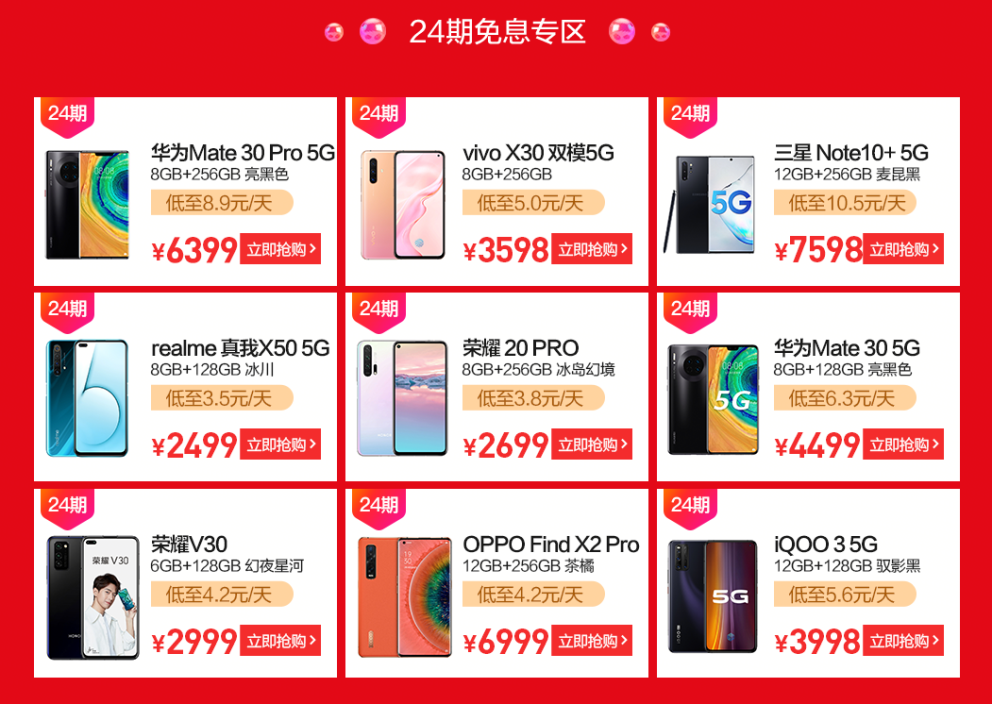 今日,蘇寧5G手機(jī)節(jié)正式迎來(lái)開門紅,開啟5G手機(jī)迄今為止最大力度的免息專場(chǎng),5G手機(jī)最低每天只需3.5元即可入手。